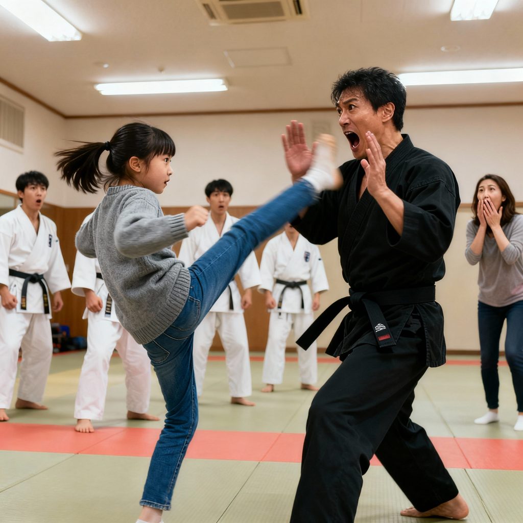 Un cinturón negro le pidió a la hija de la empleada de limpieza que peleara como una broma. Segundos después, su primer golpe congeló a todo el gimnasio.
