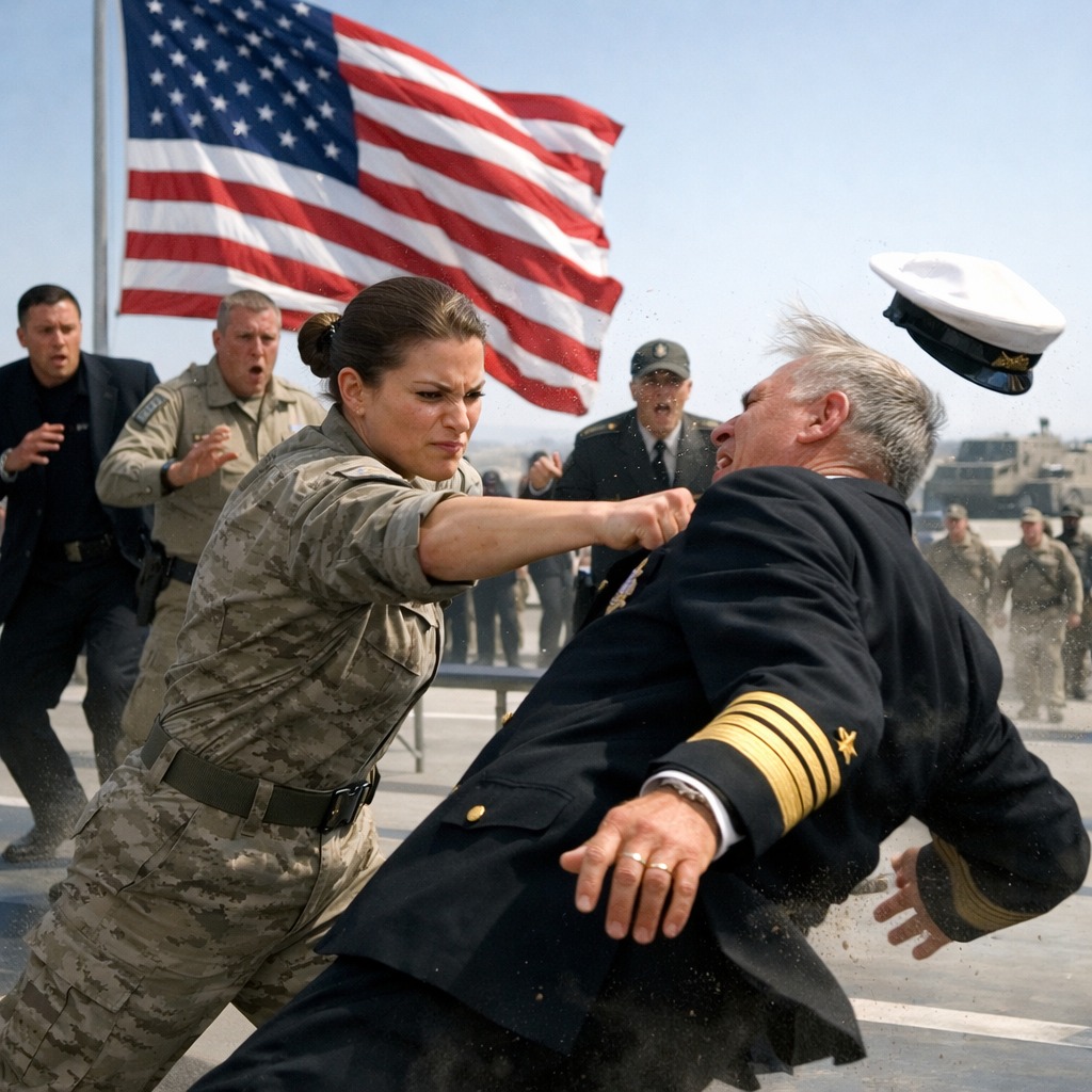 La contarían en el gimnasio en susurros, como los reclutas contaban leyendas. La contarían en el comedor con medias sonrisas y ojos abiertos. La contarían como un mito urbano, porque sonaba imposible: un almirante abofeteó a una teniente y, antes de que sus guardaespaldas reaccionaran, ella lo tiró al suelo.