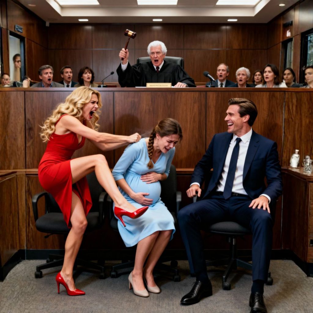 Las mejillas de Sabine se enrojecieron de rabia. En lugar de obedecer, dio varios pasos furiosos hacia Marina. Los agentes de seguridad le gritaron que se detuviera. Ella no escuchó. Su tacón impactó con violencia el abdomen de Marina.