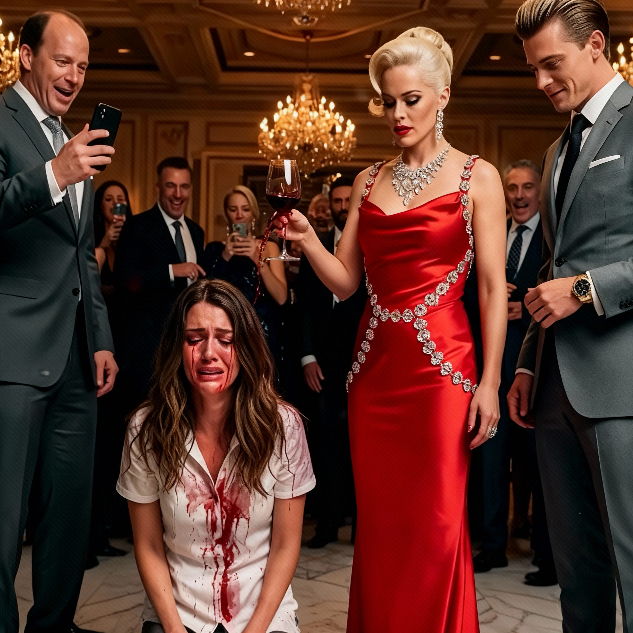 La multitud a nuestro alrededor estalló en risas. Algunas personas incluso aplaudieron. Unos pocos parecían incómodos, pero nadie, ni una sola persona, se levantó para ayudarme. Estaba de rodillas, con el vino goteando de mi vestido, las lágrimas finalmente liberándose y corriendo por mi rostro. Se suponía que esta sería una noche especial. Se suponía que estaría apoyando a mi esposo.