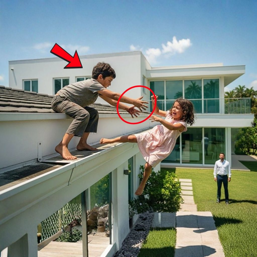 El pobre joven subió a la mansión para salvar a la niña que estaba cayendo; su padre millonario fue testigo de todo.