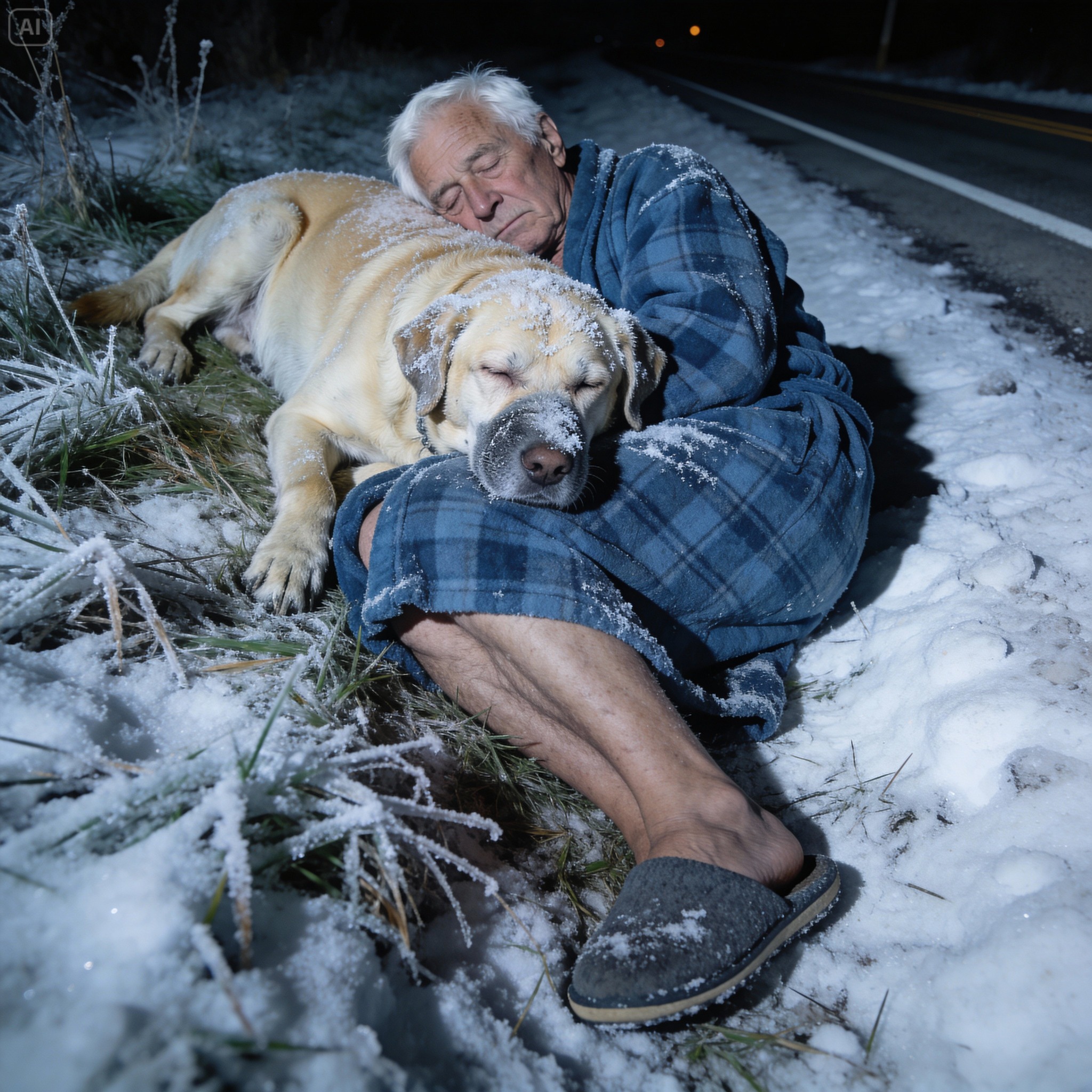 El Labrador viejo temblaba entero, pegado al pecho de Arthur, con la cabeza recargada en su cuello. No se movía, no ladraba. Solo estaba ahí, usando su cuerpo para darle calor.