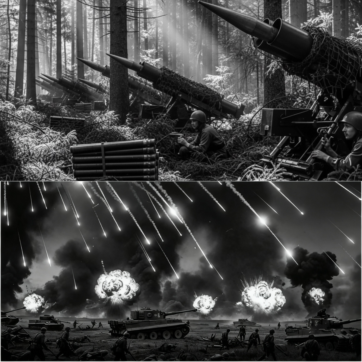 Los cohetes impactaban con explosiones cegadoras que convertían tanques en chatarra retorcida y hombres en sombras carbonizadas en las paredes. Joachim Peiper intentó gritar órdenes, pero su voz se perdió en el estruendo apocalíptico.
