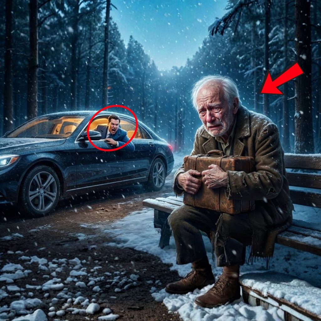 Pisó el acelerador. Las ruedas levantaron una nube de nieve sucia que salpicó el abrigo del anciano. Don Arturo quedó de pie, mirando cómo las luces rojas se perdían en la curva, tragadas por la oscuridad y la tormenta. Luego se sentó en el banco de madera húmeda, temblando no solo por el frío, sino por ese dolor agudo que no cura ninguna medicina: la traición de la propia sangre.