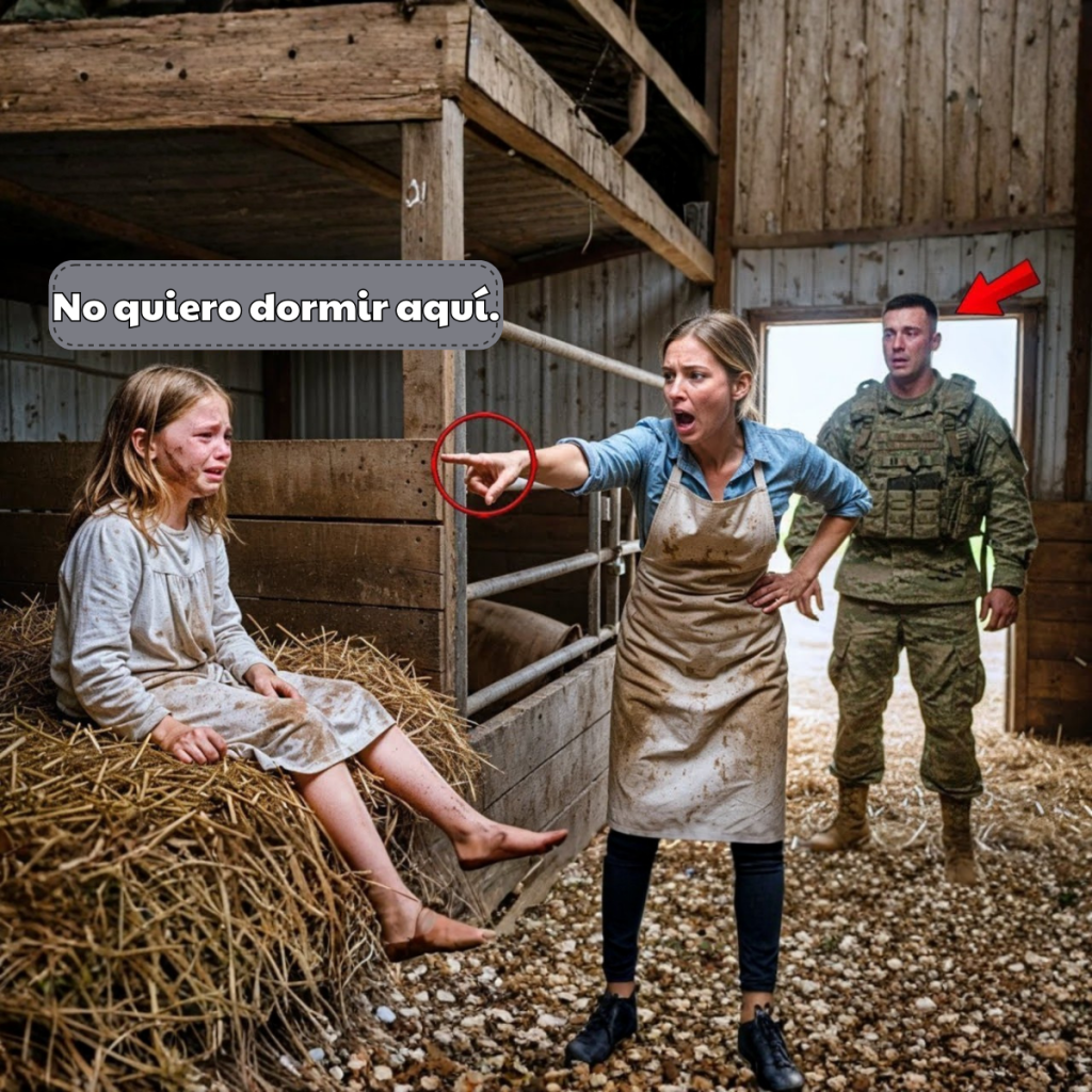 Su hija, Ana, hecha bolita sobre paja sucia, con el camisón roto en el hombro, los talones llenos de costras y el cabello pegado de polvo. No lloraba; solo miraba con unos ojos grandes, vacíos, como si ya se hubiera acabado el permiso de llorar. Frente a ella estaba María, la mujer a la que Ramiro dejó “para que cuidara a la niña mientras él servía”, con un cinturón en la mano y la cara roja de rabia.