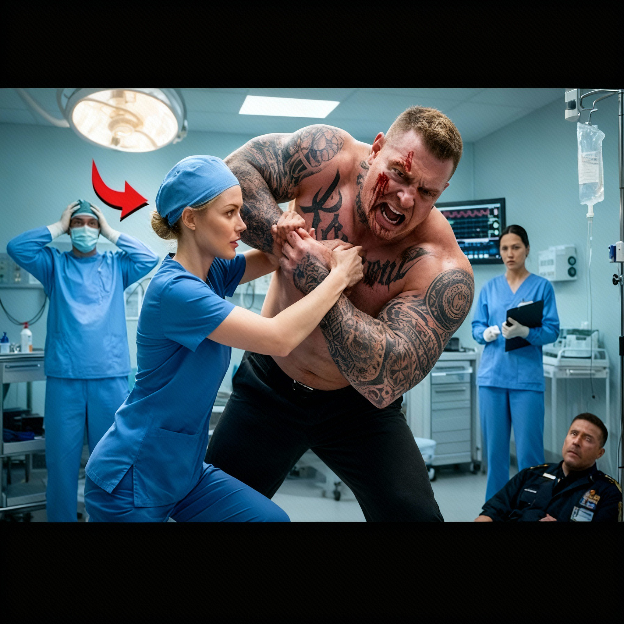 La sala de emergencias estaba llena de ruido hasta que dejó de estarlo. Las puertas automáticas se abrieron de golpe y un gigante de más de dos metros, cubierto de tatuajes, irrumpió en el interior. Tenía las venas hinchadas, los puños apretados y los ojos desorbitados.