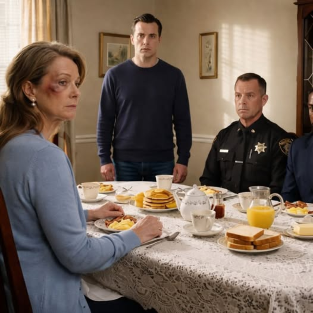 Esa madrugada me levanté antes del amanecer, como siempre. Tenía la mejilla hinchada, pero la cubrí con cuidado con maquillaje y me coloqué mis pendientes de perla. Extendí el mantel de encaje que mi madre me regaló cuando me casé y preparé un desayuno completo: panecillos calientes, salsa de salchicha, sémola con mantequilla, huevos revueltos y tocino crujiente. Saqué la vajilla que solo usamos en Navidad y Pascua.