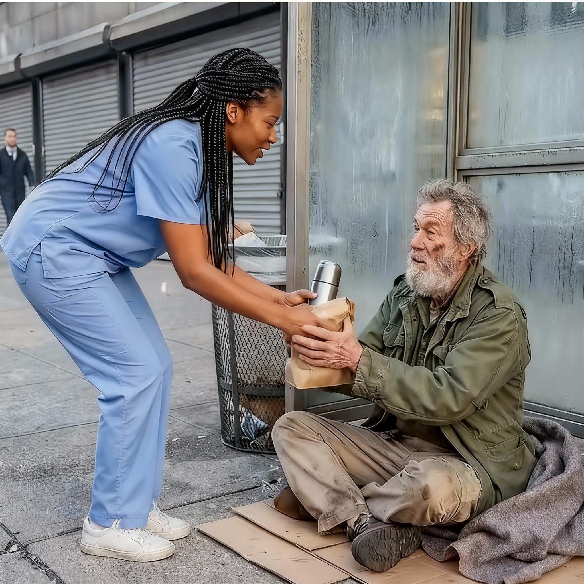 6 meses antes, Aaliyah lo había notado por primera vez. Tomaba el autobús número 47 cada mañana a las 6:30. La parada estaba a tres manzanas de su apartamento, justo afuera de una lavandería cerrada. Ahí es donde dormía George, sobre una caja de cartón aplanada, una manta de lana subida hasta la barbilla, sus pocas pertenencias metidas en una bolsa de basura a su lado. La mayoría de la gente pasaba sin mirar. Algunos cruzaban la calle para evitarlo.
