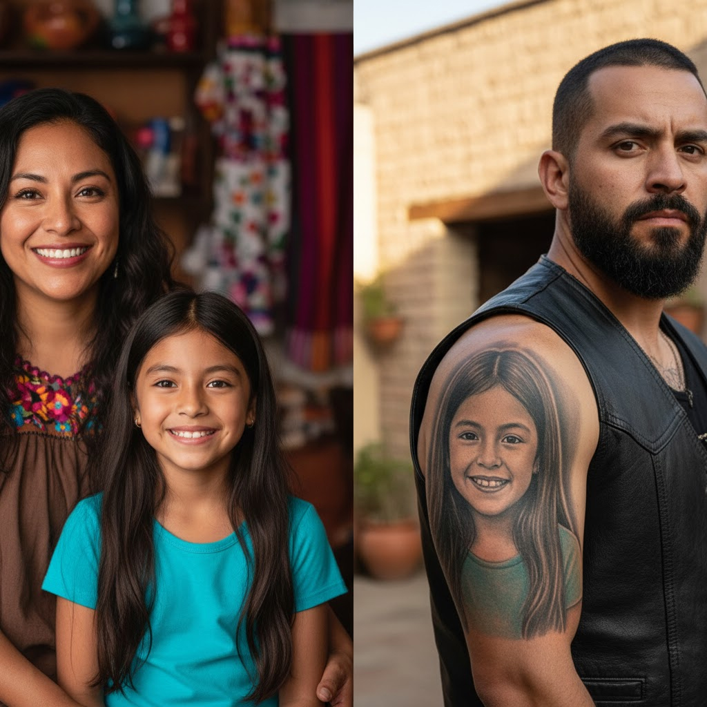 Ocho años después, en una sofocante mañana de abril, la señora Elena estaba sentada en la puerta de su panadería cuando escuchó el motor de una camioneta pick-up vieja detenerse. Un grupo de jóvenes entró a comprar agua y conchas. Ella apenas prestó atención, hasta que su mirada se detuvo: en el brazo derecho de uno de los hombres, se veía un tatuaje con el retrato de una niña.