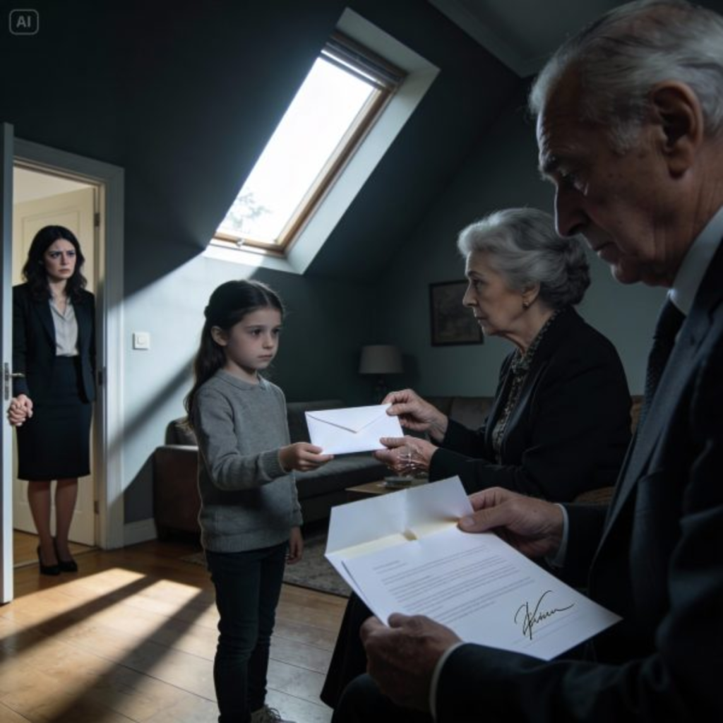 La noche que murió mi esposo, llamé a mis padres temblando, apenas podía respirar, y lo que escuché a continuación me destrozó más que el dolor mismo: «Estamos ocupados en el cumpleaños de tu hermana». Sin compasión. Sin sorpresa. Solo… desdén. Unos días después, entraron en mi casa como si nada hubiera pasado, y lo primero que dijeron no fue «¿Estás bien?», sino «Queremos el 50% de su herencia». Se me revolvió el estómago. El silencio en la habitación se sentía pesado, sofocante, hasta que mi hija de 8 años dio un paso al frente, les ofreció un sobre y dijo, casi escalofriantemente: «Esto es lo que vinieron a buscar». Cuando lo abrieron, sus manos comenzaron a temblar…