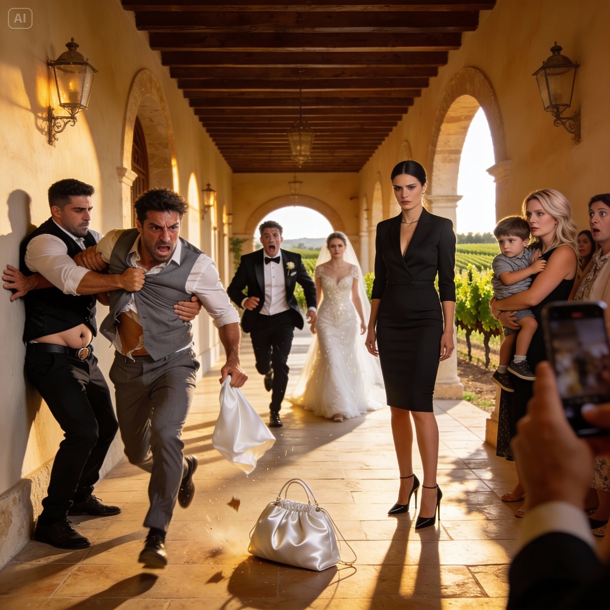 Fue entonces cuando Kyle reapareció, esta vez con otro padrino a su lado. Y en la mano de Kyle llevaba una chaqueta de traje doblada… cubriendo algo voluminoso.