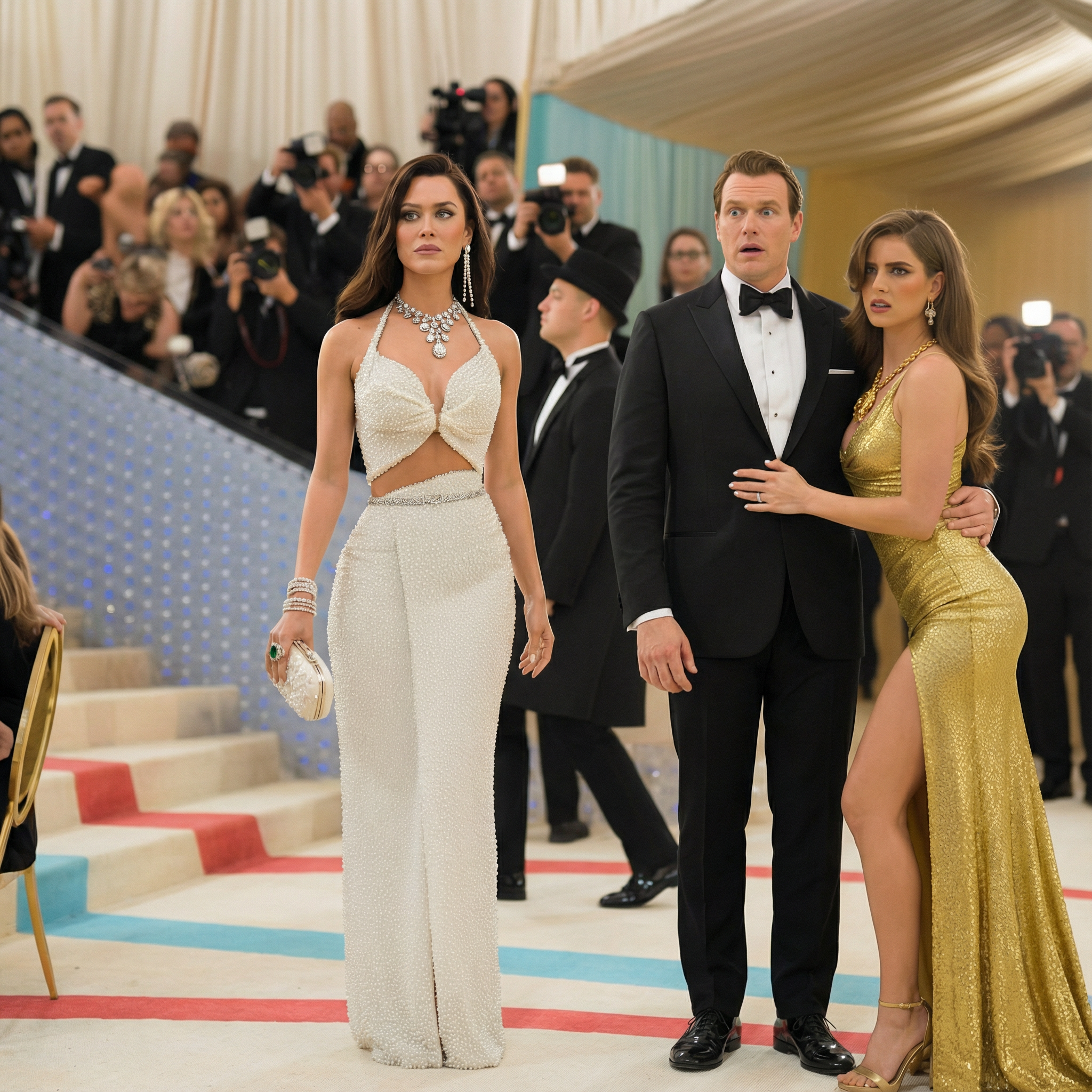 La gala Vanguard se celebró en el Museo Metropolitano de Arte. Las escaleras estaban cubiertas por una alfombra carmesí flanqueada por cuerdas de terciopelo y cientos de paparazzi gritando. Los flashes estallaban como tormentas eléctricas mientras las limusinas dejaban a las personas más ricas del mundo.