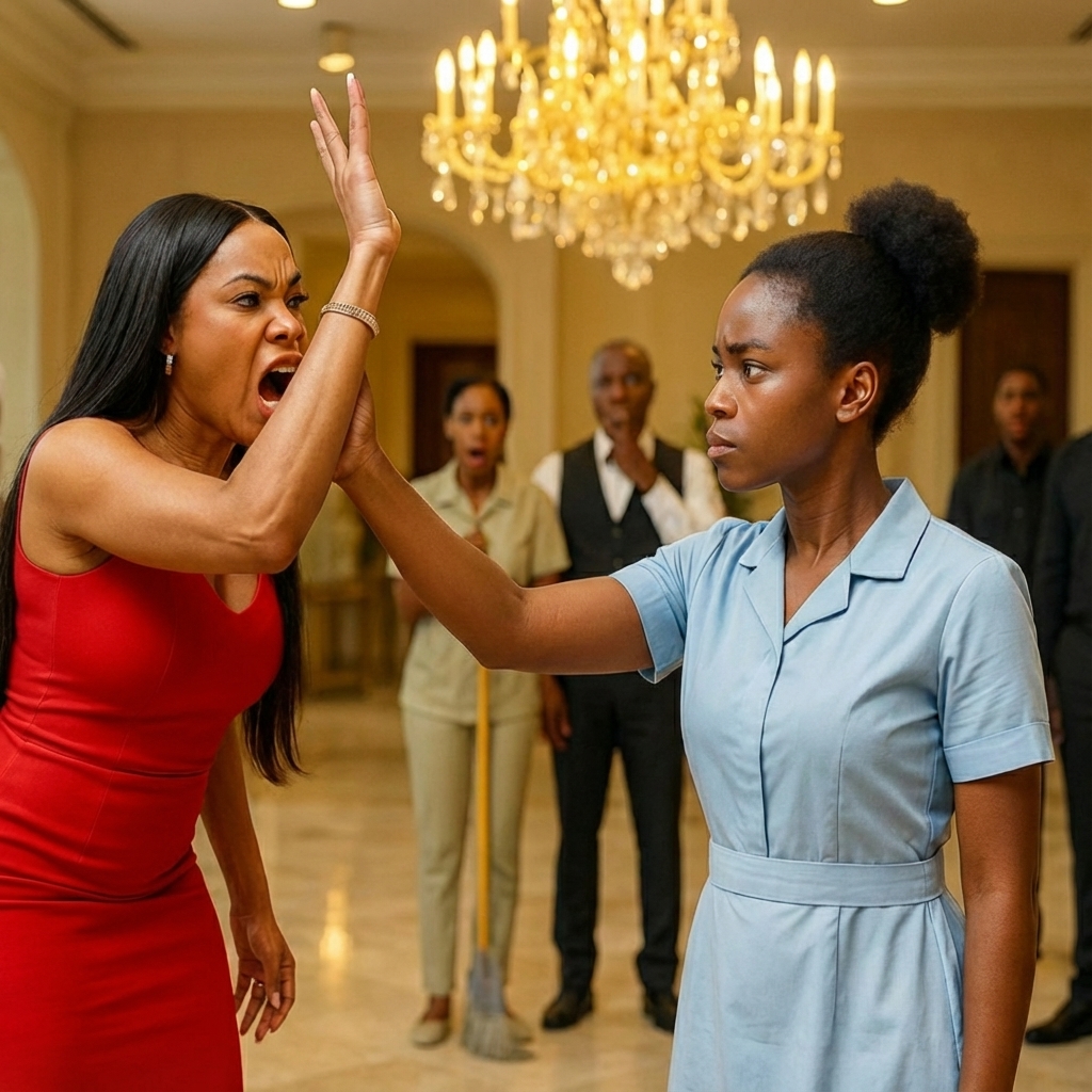Amaka la vio regañar a una empleada por una taza que “no estaba perfectamente alineada”. La vio empujar a otra por ir “demasiado lenta”. Y una tarde, escuchó el sonido seco de una bofetada en un pasillo. Nadie habló después. Nadie preguntó si la chica estaba bien. Solo se escuchó el eco, y luego el trabajo siguió, como si el dolor fuera parte del uniforme.