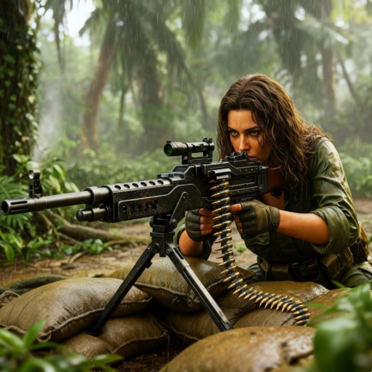El barro se pegaba. Tropezó. La pesada mochila de radio golpeó su cara primero contra el fango. Luchó por levantarse como una tortuga volteada sobre su espalda. Maddox la miró. Miró la línea de árboles donde el fuego trazador enemigo se acercaba cada vez más. Hizo un cálculo. Ella estaba muerta. Peso muerto.