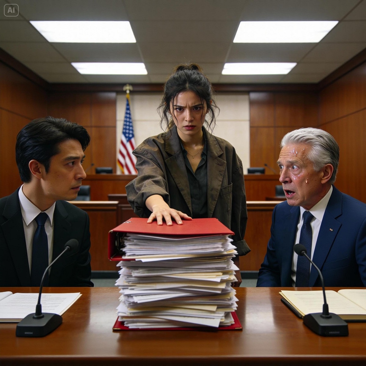 Mi padre adinerado se rió a carcajadas en una sala del tribunal llena porque yo no podía permitirme un abogado… hasta que coloqué una sola carpeta roja sobre el estrado de la jueza, lo que le borró la sonrisa de la cara y lo envió a prisión.