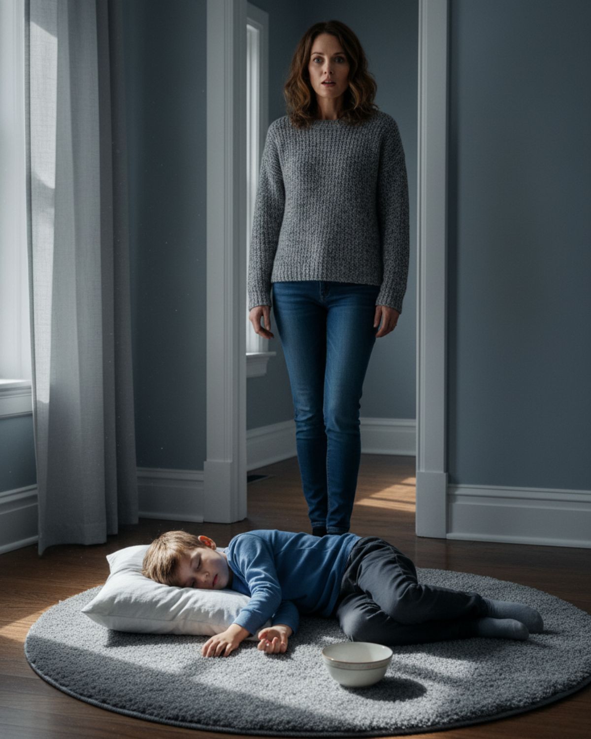 Con manos torpes, Laura abrió el pestillo. El olor la golpeó de inmediato: encierro, orina, aire viciado. Ethan estaba sentado en el suelo, abrazando un muñeco de tela. Estaba pálido, delgado, con ojeras profundas.