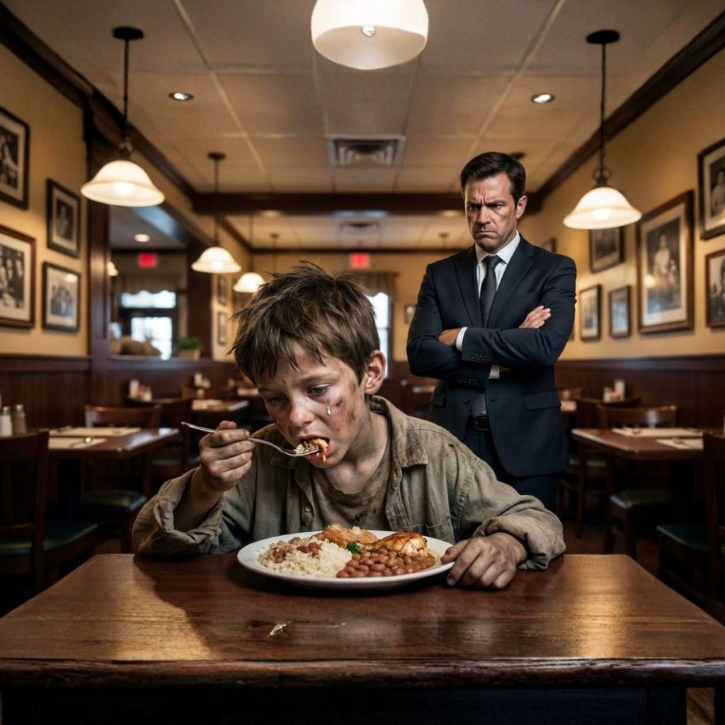 Don Ricardo lo condujo a una mesa apartada, cerca de la cocina. “Siéntate”, le indicó, su voz aún calmada. Luego, sin esperar respuesta, se dirigió a la cocina. Juan se sentó, rígido, sintiéndose fuera de lugar en ese ambiente tan pulcro y cálido. Sus ropas sucias y su olor a calle eran un contraste brutal con el mantel impoluto.