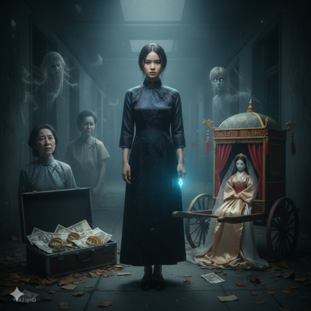 Diệp Linh advirtió: “Si aceptaste en sueños, mañana vendrá el palanquín fantasma por la novia. La única forma de escapar es usar una muñeca de papel como sustituta”.