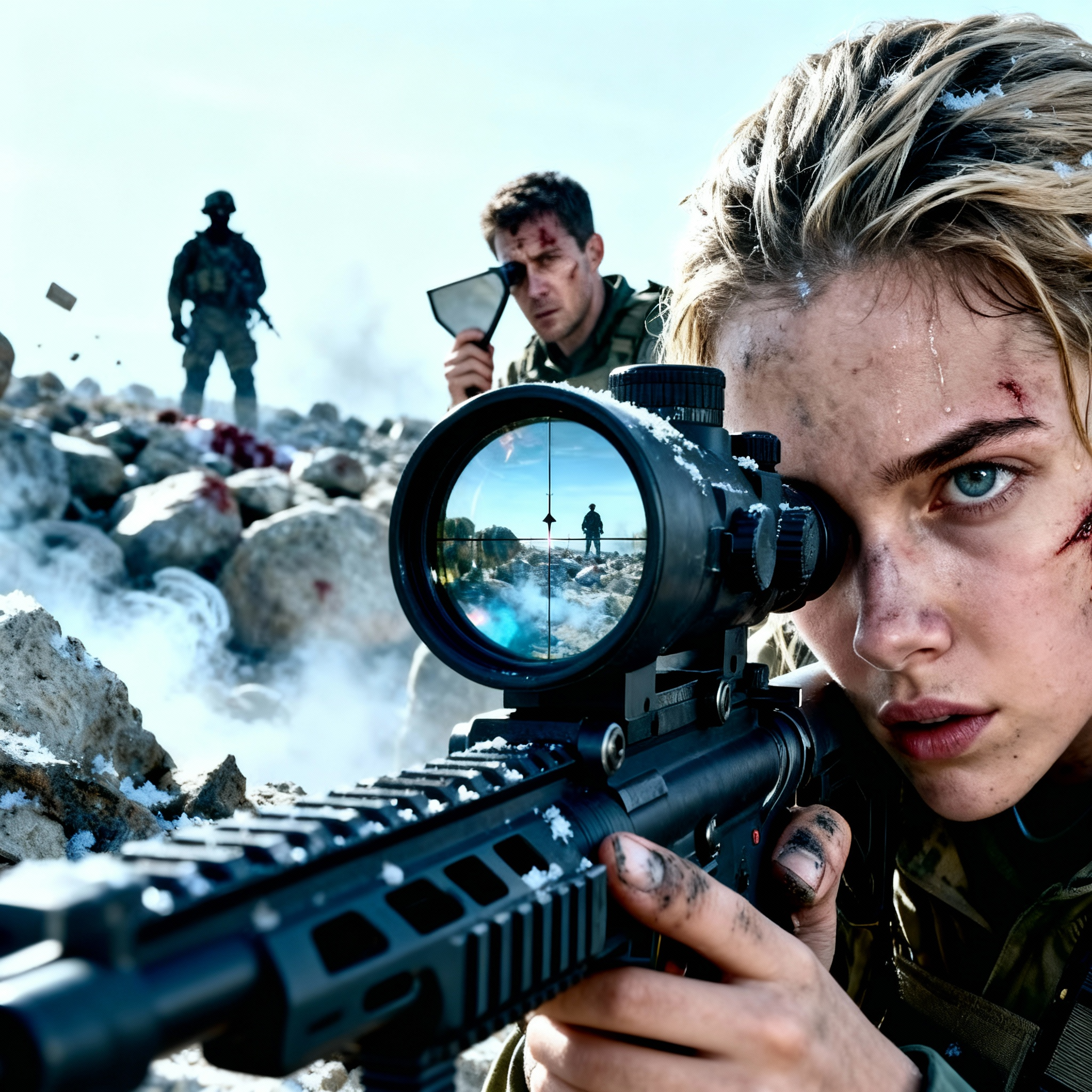 Otro disparo golpeó el concreto a centímetros de donde había estado su cabeza. Polvo y fragmentos explotaron hacia afuera. Esto era diferente del equipo de mortero. Esto era personal. Un tirador contra otro. El francotirador enemigo sabía exactamente dónde estaba ella.