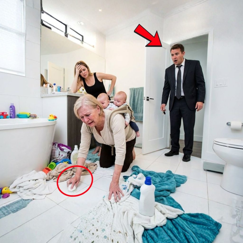 Su madre, Elena, estaba arrodillada en el suelo de baldosas grises. No llevaba puesto el cómodo pijama de seda que él le había comprado, sino un viejo delantal de lona y ropa desgastada que no había visto en veinte años. Estaba frotando vigorosamente una mancha enorme y oscura en la alfombra de la entrada, que había sido llevada a la lavandería para limpieza profunda.