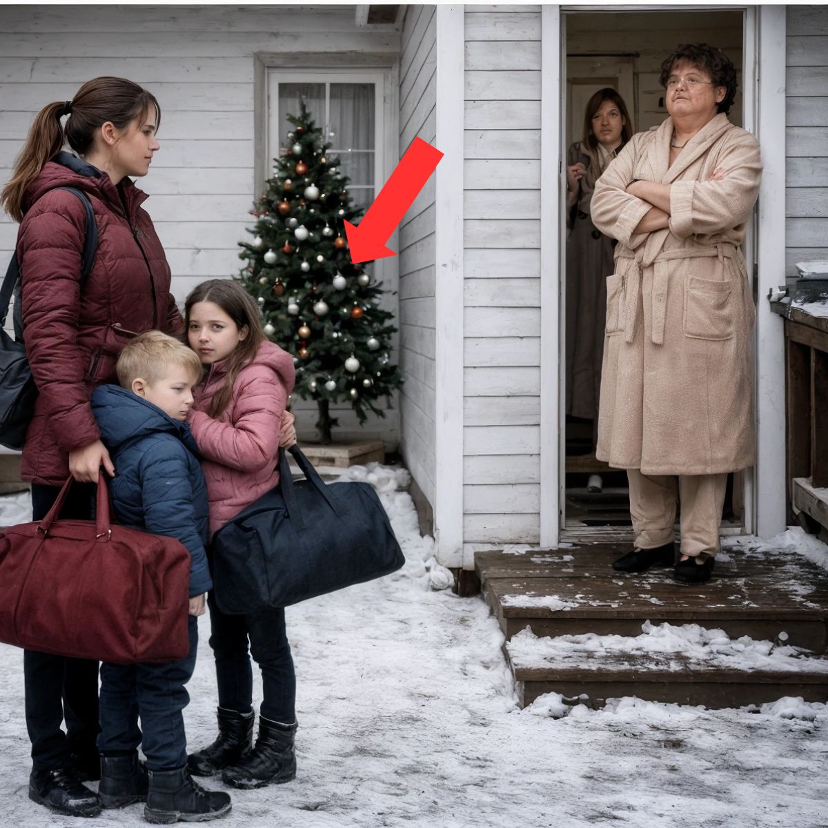 —¡Víbora! ¡Te traté como a una hija! ¡Y tú nos echas a la calle, con frío, la víspera de Año Nuevo! ¡Sin corazón!