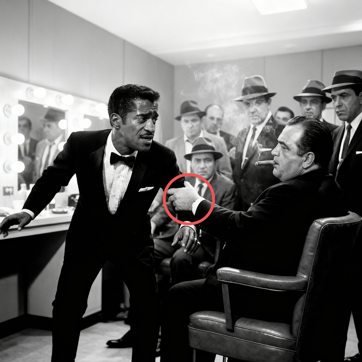 Porque esperándolo en su camerino había un hombre que no aplaudía, un hombre que no sonreía, un hombre que había matado a 17 personas con sus propias manos, y quería algo de Sammy Davis Jr., algo que Sammy no podía darle.
