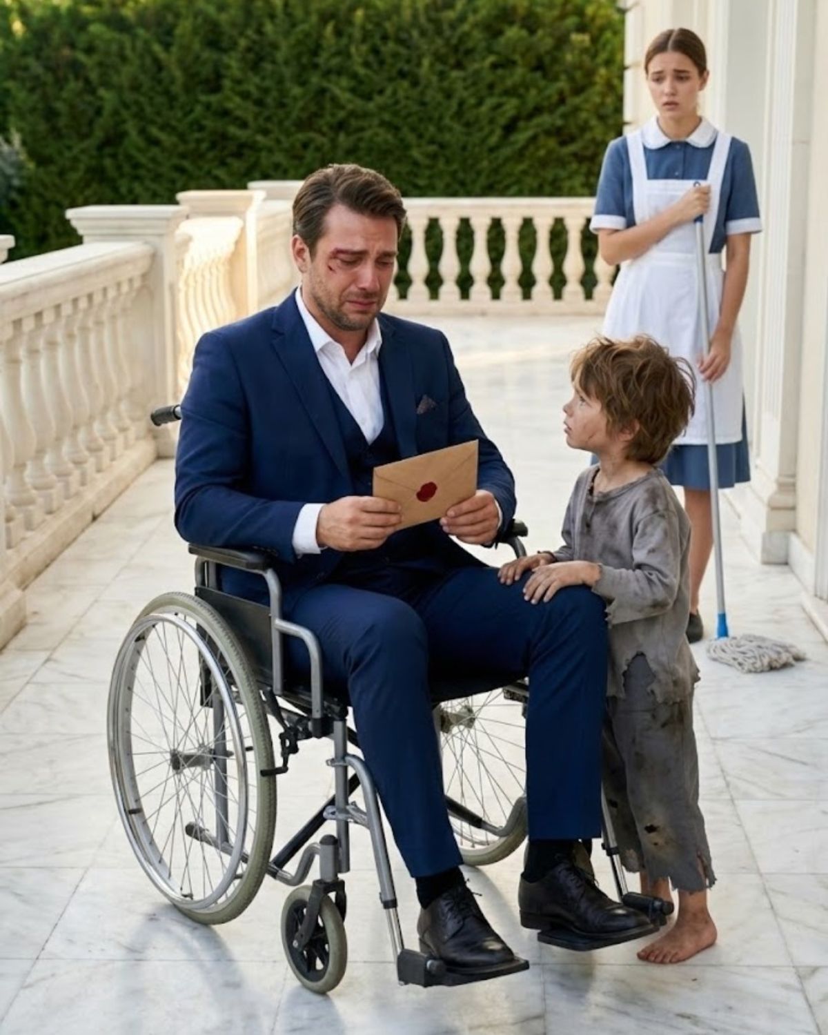 Thiago, el empresario más rico de la ciudad, estaba sentado en su silla de ruedas bajo el sol de la mañana: roto, en silencio, llorando como si la mansión misma por fin lo hubiera tragado por completo.