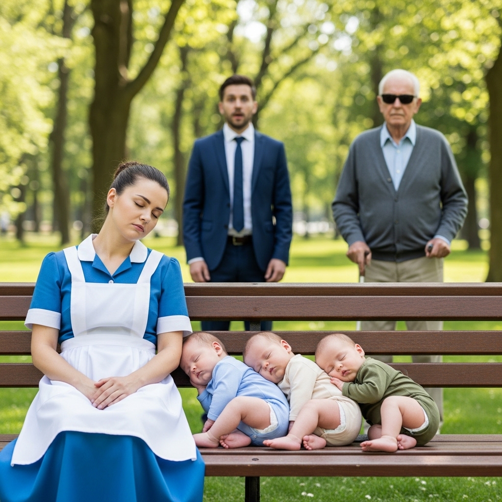 EMPRESARIO LLEVA A SU PADRE A LA CALLE… Y ENCUENTRA A SU EMPLEADA DE LIMPIEZA DURMIENDO EN LA PLAZA CON TRES BEBÉS EN LOS BRAZOS…