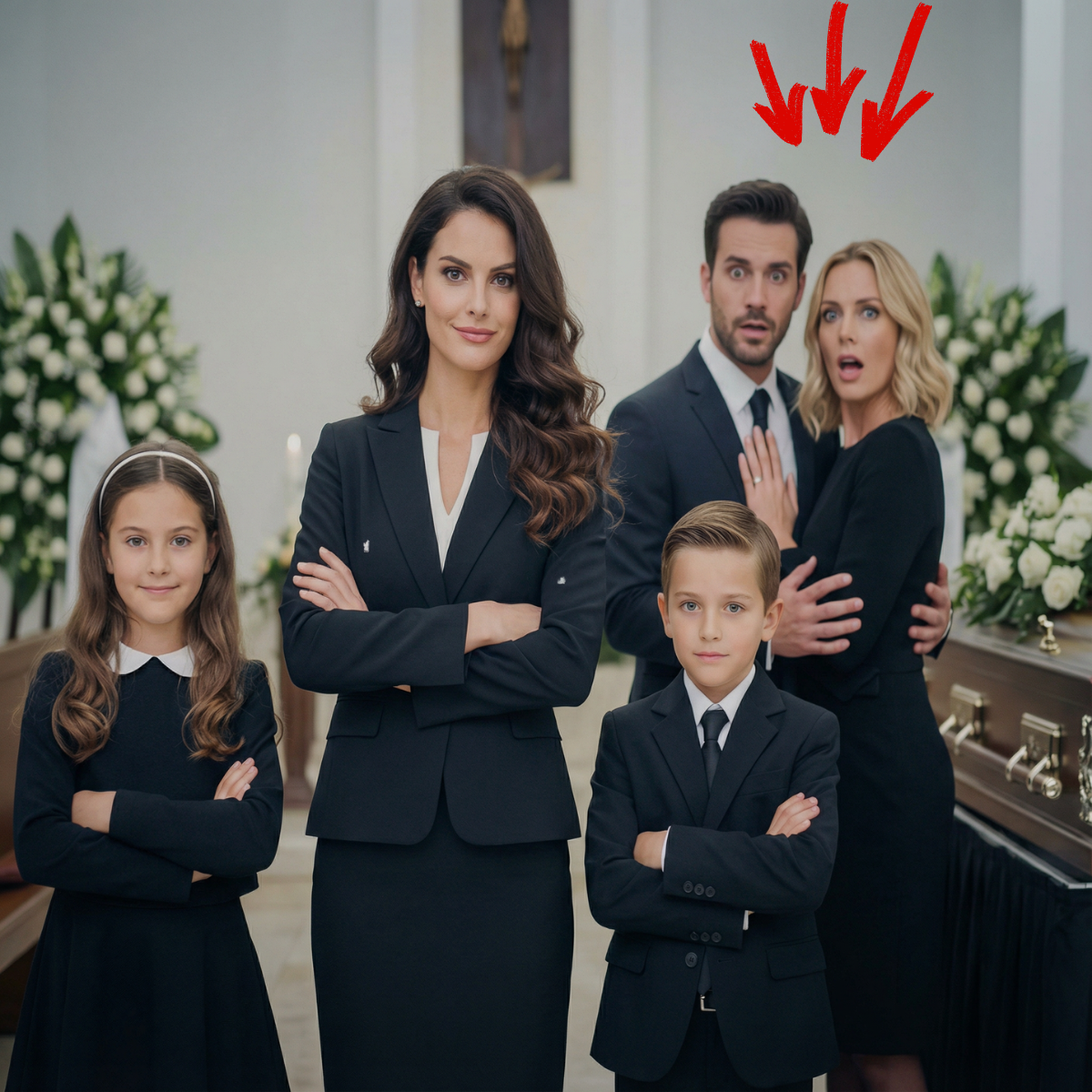 Mi suegra Pilar estaba en una silla de ruedas. Mi suegro, Joaquín, que había sufrido un ictus, yacía inmóvil. Hice que los trajeran para completar el cuadro. Mis dos hijos, Leo y Sofía, se aferraban a mis piernas. Aún no entendían todo. Solo sabían que hoy todo el mundo vestía de tristeza y decía que papá se había ido lejos.