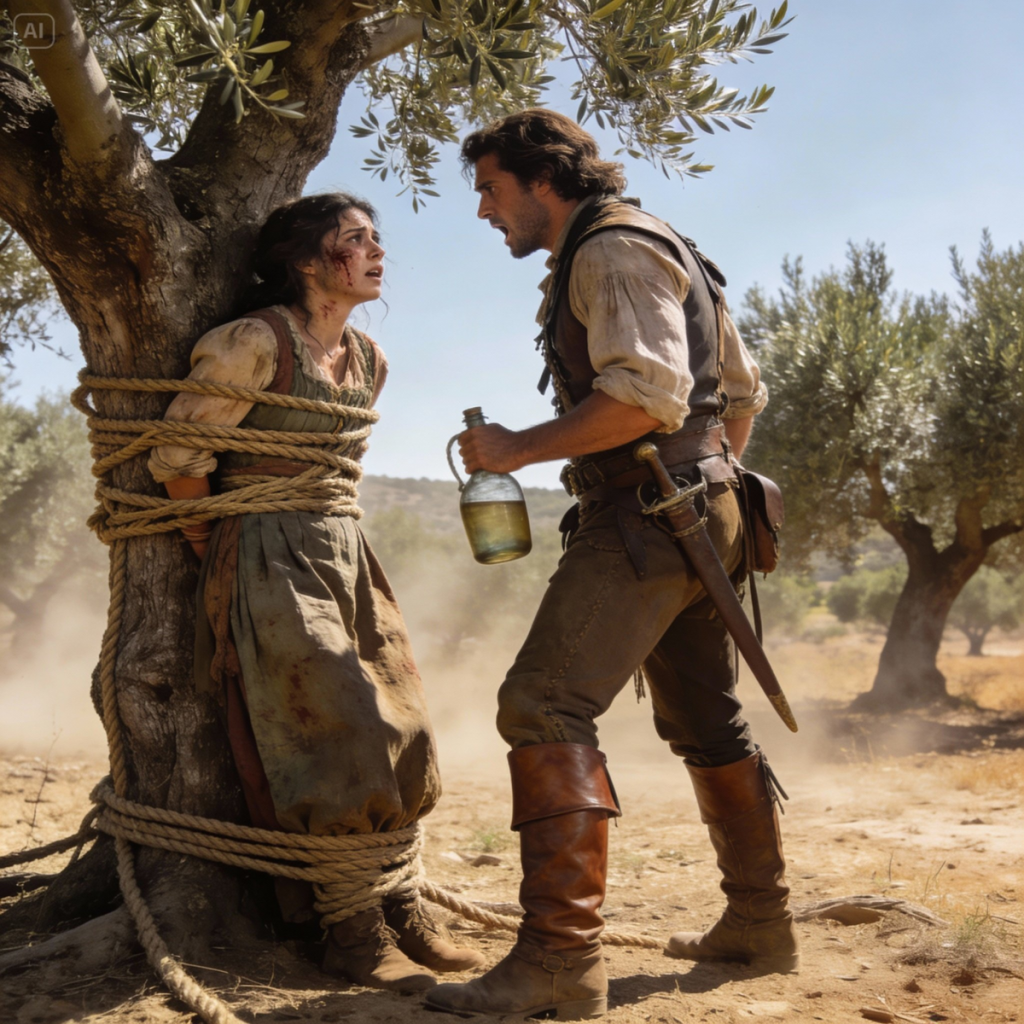 La corteza del viejo olivo se me había clavado en la espalda como si fuera una segunda columna vertebral, una hecha de dolor y astillas. Llevaba tres días allí. Tres días viendo cómo el sol recorría el cielo de España, indiferente a mi sed, indiferente a mis muñecas que ya no sentía, indiferente a la vida que se me escapaba por la boca seca.