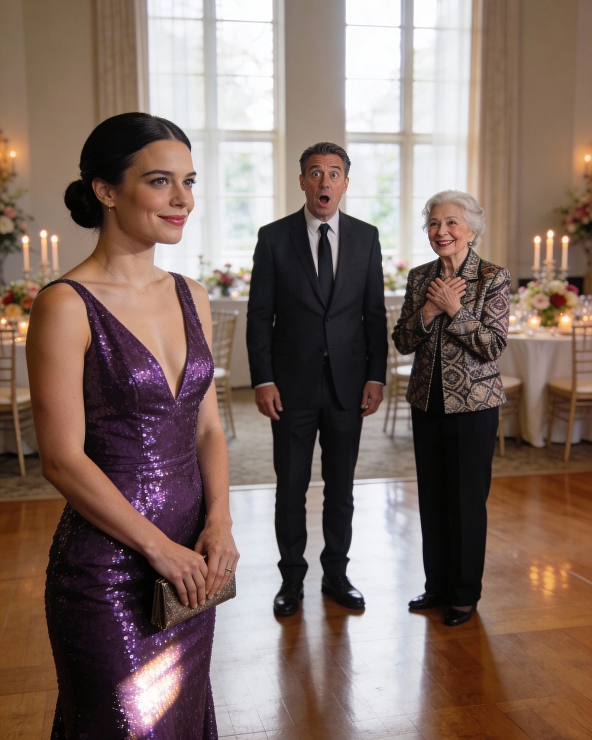 Cuando Patricia se lo probó, se quedó quieta frente al espejo. No vio a la empleada de limpieza. Vio a una mujer erguida, de ojos vivos, con una belleza que siempre había estado ahí, escondida bajo uniformes y cansancio. El morado le encendía la mirada.