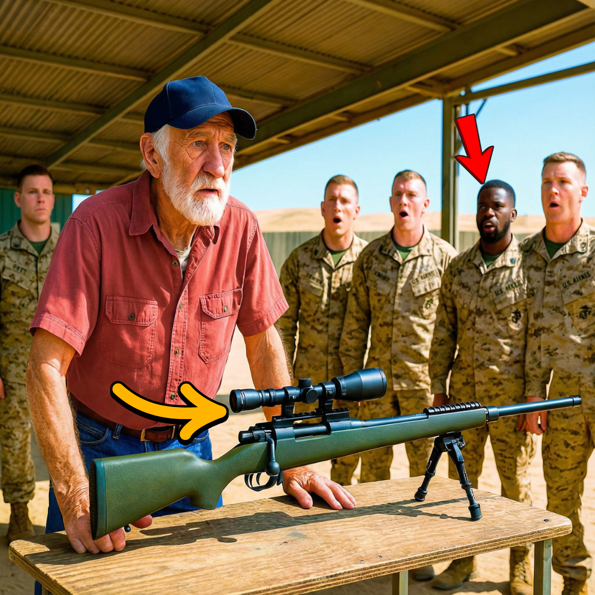 Dean Peters, de 82 años y vestido con unos vaqueros desgastados y una camisa de trabajo descolorida, no reaccionó. Sostenía un objeto largo envuelto en tela en sus manos, su postura relajada, pero sus ojos agudos. No se les escapaba nada. Observaba las banderas en el campo de tiro, cada una contando una historia diferente. Una sinfonía de caos que el equipo avanzado de los jóvenes marines no podía descifrar.