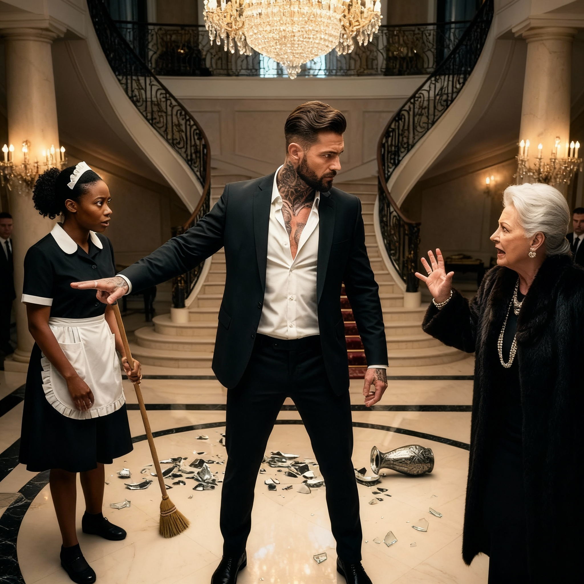 Horas más tarde, ocurrió el desastre. Luna llevaba suministros de limpieza a través del vestíbulo de mármol cuando la voz chillona de la señora Hawthorne la hizo saltar.