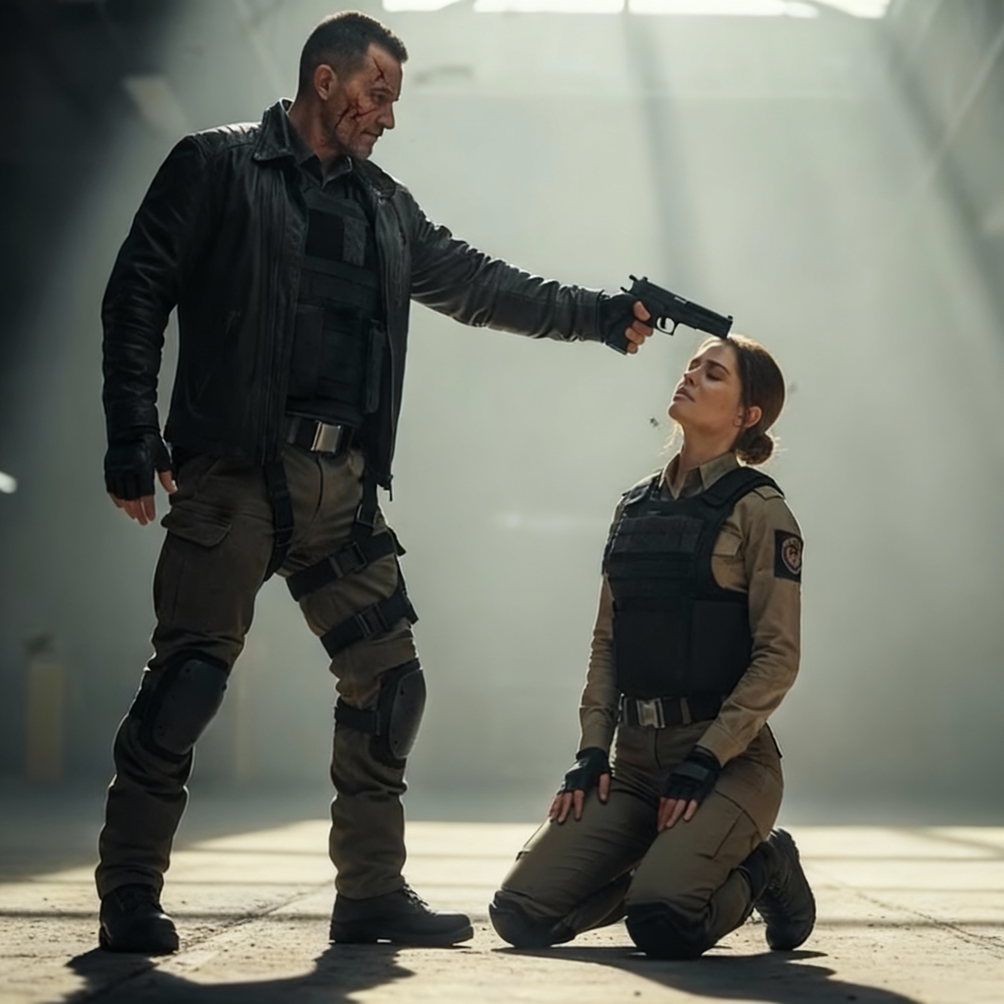 De vuelta en el almacén, la situación era terminal. El comandante mercenario presionó el cañón de la pistola contra la frente de Maya. El metal estaba caliente.