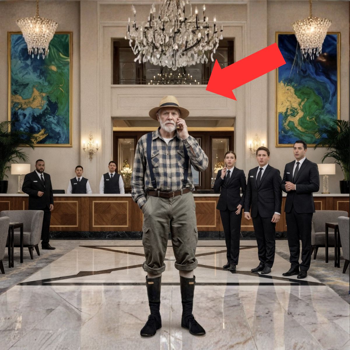 पास खड़े कुछ मेहमान उसे दया और तिरस्कार के मिले-जुले भाव से देखने लगे। सबको लगा कि यह किसान “औकात से ऊपर” जा रहा है—उसे अपनी जगह नहीं पता और फिर भी लक्ज़री होटल में घुस आया है।