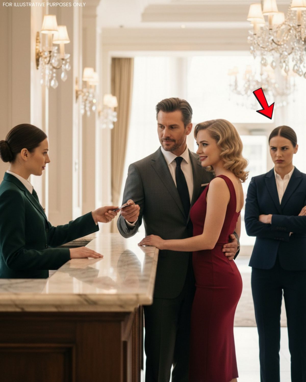 La recepcionista tecleó con ritmo constante, con una expresión profesional y neutral, aunque ya había notado las señales conocidas. Había visto parejas así antes: hombres que evitaban el contacto visual al firmar, mujeres que brillaban con la emoción del secreto.