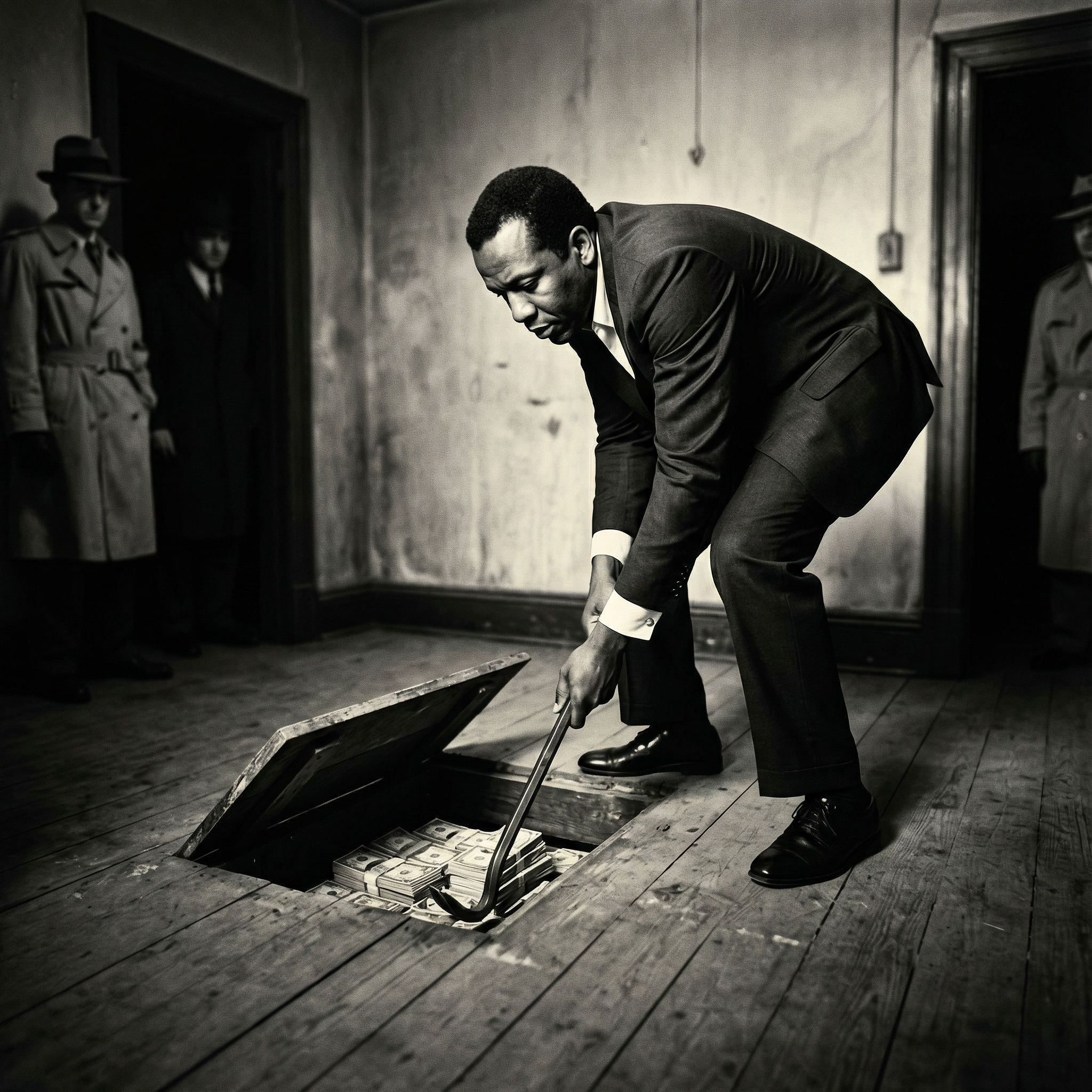 Descanse en paz, Bumpy Johnson, 1905 a 1968. El hombre que escondió €48 millones de la manera más genial imaginable. Descanse en paz, Frank Lucas. 1930 a 2019. El hombre que lo encontró, lo usó y construyó una leyenda. El escondite que desconcertó al FBI durante 10 años. El dinero que construyó un imperio. La lección que todavía importa hoy. Mantente invisible. Mantente callado. Y nunca jamás uses un abrigo de chinchilla en un combate de boxeo. Fin.