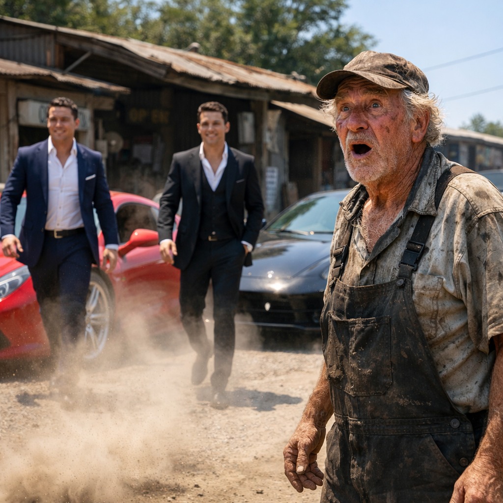 Jaume sintió que su corazón latía con fuerza contra su pecho. Sus piernas se sentían débiles, pero no podía moverse. Estaba clavado en su lugar, observando con los ojos muy abiertos. Las puertas de los autos se abrieron hacia arriba como alas de un ave exótica. De cada Ferrari descendió un joven que parecía salido de una revista de moda. Vestían trajes oscuros perfectamente cortados, camisas blancas impecables, zapatos de cuero que brillaban bajo el sol. Ambos eran idénticos, el mismo rostro, la misma estatura, el mismo porte elegante, gemelos.