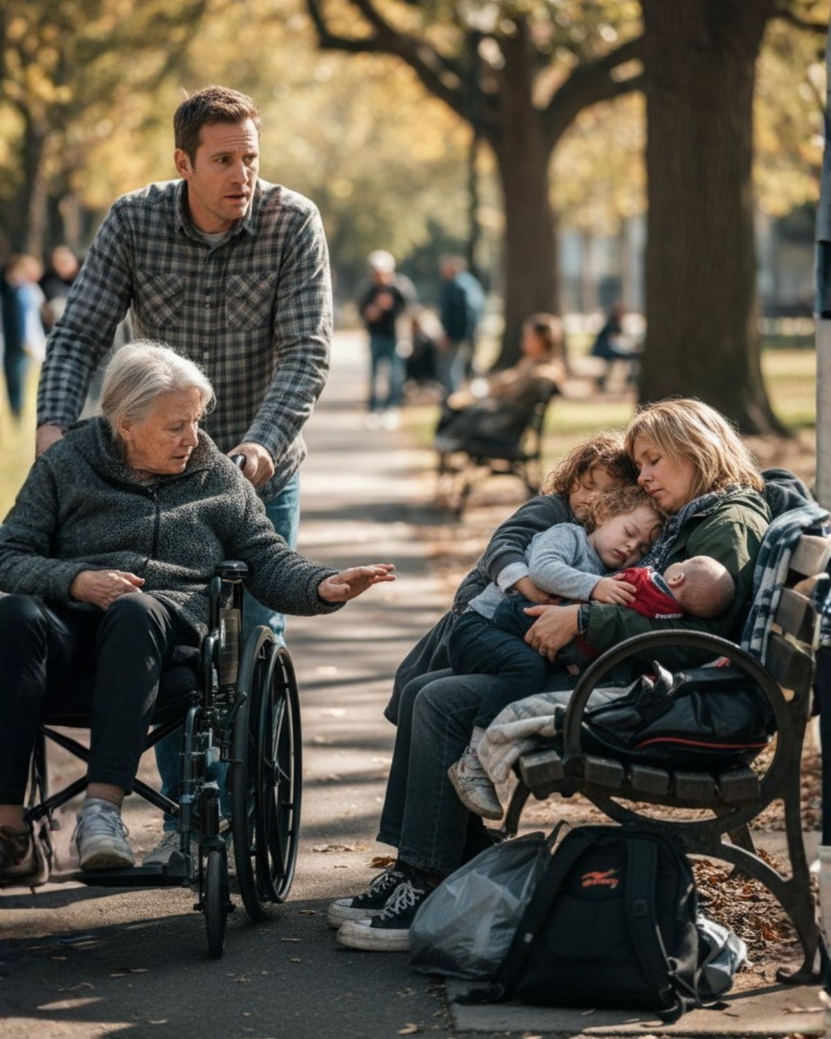 Mi exesposa en un banco del parque con un cochecito triple. Eso era lo último que pensé que vería… y, sin embargo, ahí estaba yo, caminando por el parque en una mañana de domingo perfecta con mi madre, Eleanor.