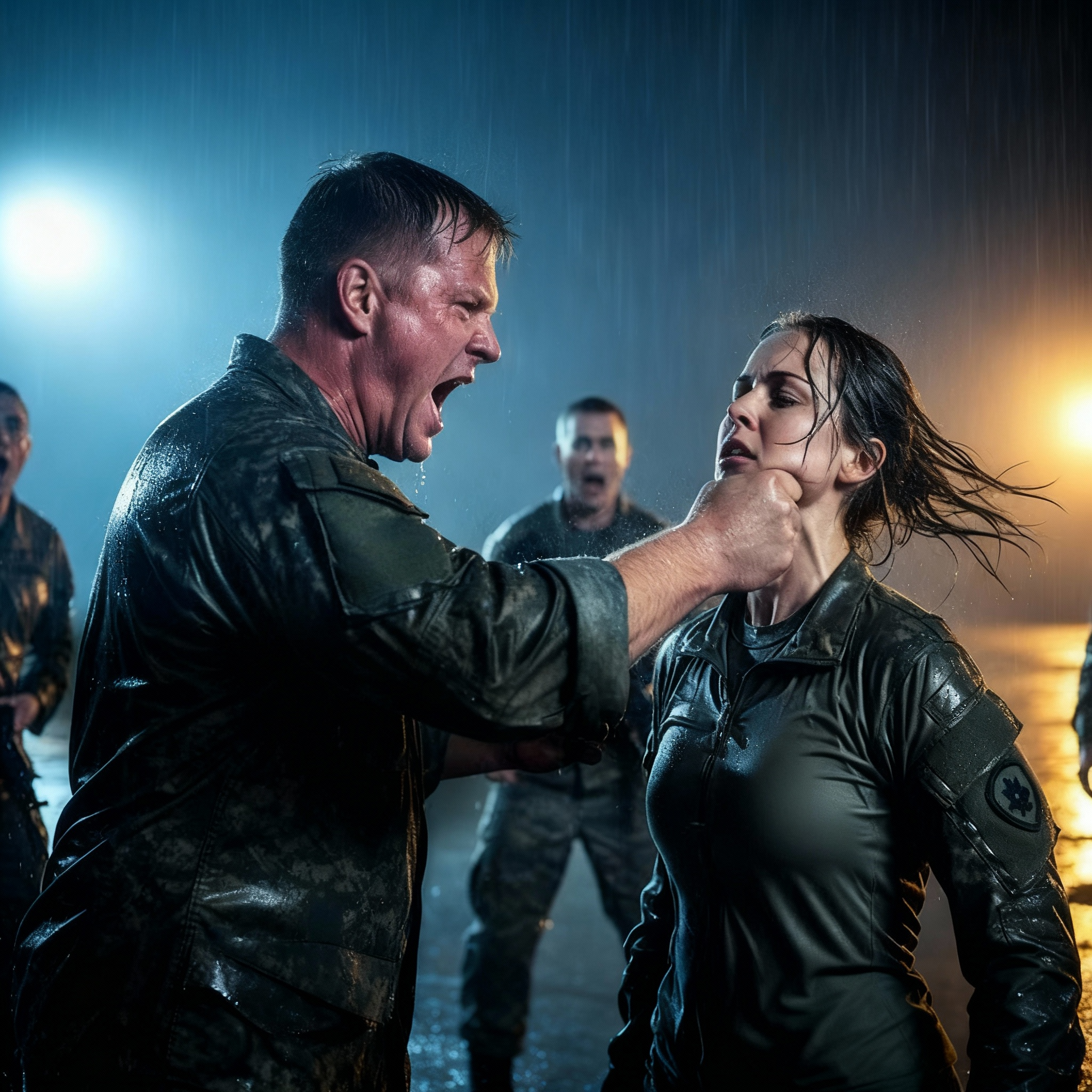 En una impactante violación del protocolo de entrenamiento, su mano no se detuvo. No fue un golpe con toda la fuerza, pero fue mucho más que un toque. Su palma abierta conectó con el lado de su mandíbula con un chasquido agudo que resonó a través del gimnasio silencioso. Fue un golpe destinado a aturdir, a humillar, a forzar un grito de dolor o una muestra de miedo.