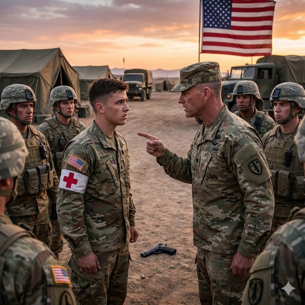 El primer disparo quebró el aire como un látigo, haciendo que todas las conversaciones en el campo de entrenamiento se detuvieran en seco. Estaba congelada, las botas hundiéndose ligeramente en el suelo polvoriento de Fort Graystone, mi brazalete de médico brillando contra mi manga. El general Richard Hawthorne no fallaba por accidente. Disparó de nuevo. Y otra vez. Cinco rondas en total, cada una impactando en la tierra a centímetros de mis pies.