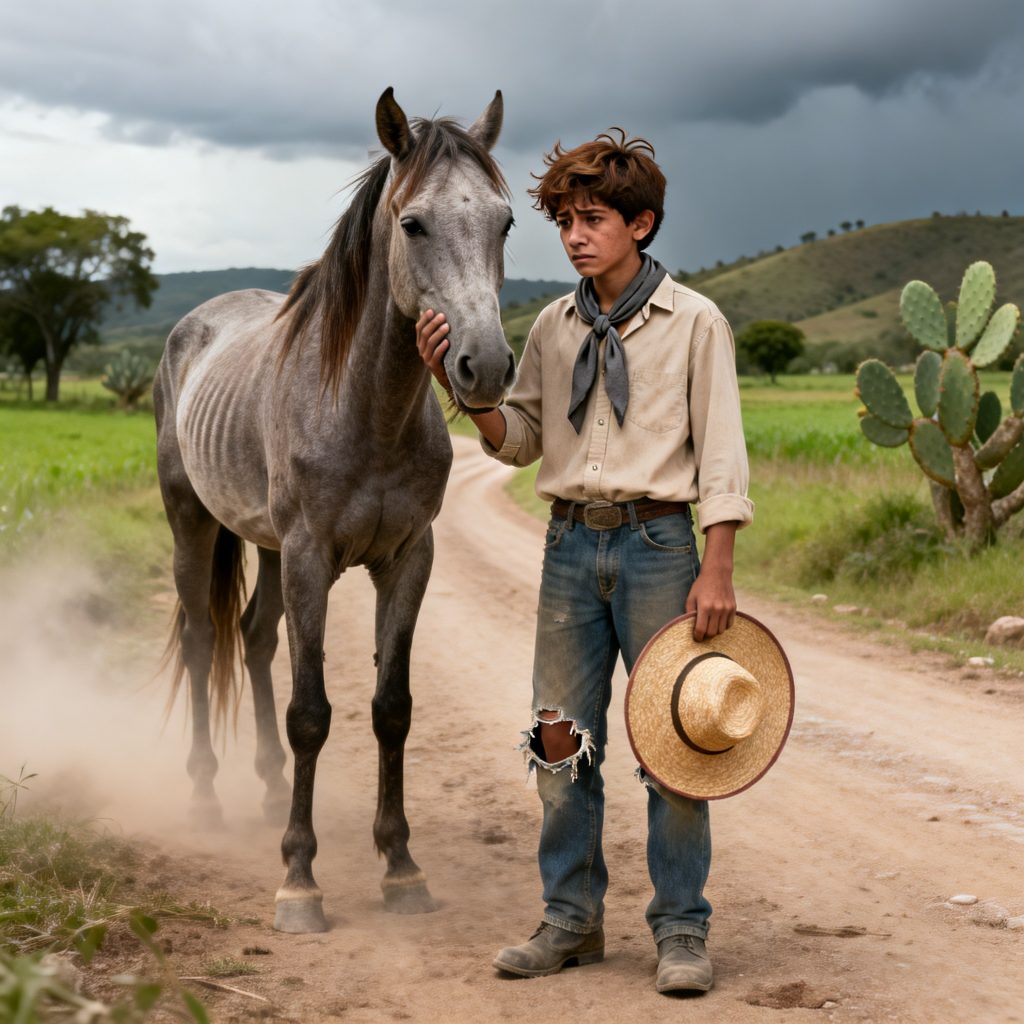 Don Evaristo lo vio y soltó una carcajada. “Mira nomás… trabajaste como burro, chamaco.” Tomás se quedó quieto. El patrón chasqueó los dedos sin mirarlo de verdad. “Dale algo al muchacho. Lo que sea. Un animal viejo, un caballo, lo que encuentres por ahí.” Y se dio media vuelta, ya hablando con otro, como si el mes de Tomás no hubiera existido.