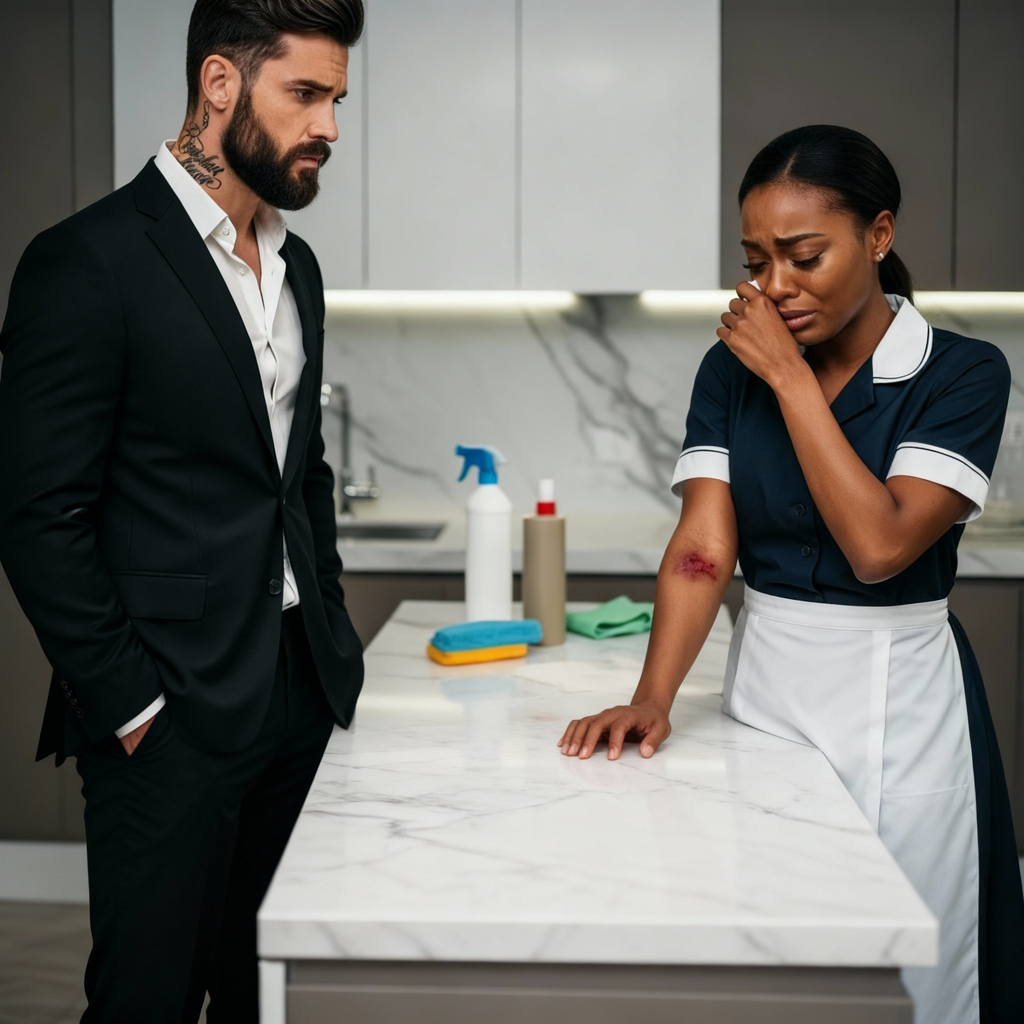 Las manos de Tiana temblaban mientras fregaba la encimera de mármol por tercera vez; las lágrimas corrían por su rostro y se mezclaban con la solución de limpieza. La cocina de la finca Rossi estaba en silencio, excepto por sus sollozos quietos. Pensaba que estaba sola. No escuchó los pasos detrás de ella hasta que su voz cortó el aire como una cuchilla.