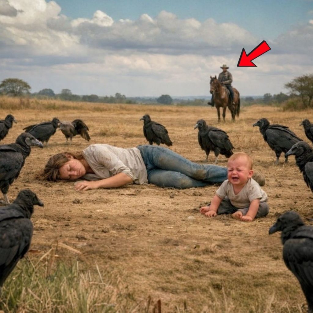Los zopilotes avanzaban despacio hacia el bebé, abriendo sus alas negras, acortando la distancia a cada paso. No tenían prisa. Sabían que el tiempo estaba de su lado. El niño lloraba débilmente, casi sin voz, sentado en la tierra seca, cubierto de polvo, como si el llanto ya se le hubiera acabado antes que las fuerzas. A unos metros, una mujer yacía de lado, inconsciente, el rostro pegado al suelo, un brazo extendido hacia él, como si hubiera intentado cubrirlo hasta el último segundo.