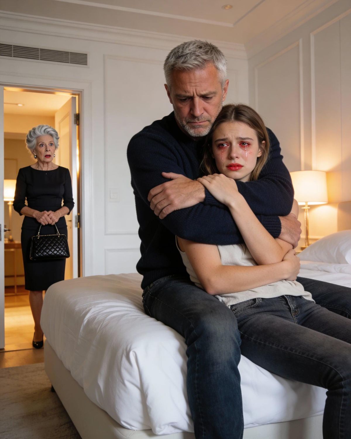 Caleb estaba sentado en el sofá, inclinado hacia Isabel. Ella estaba a su lado, con los hombros temblando, lágrimas corriéndole por la cara. La mano de él descansaba sobre su brazo, como si intentara sostenerla.