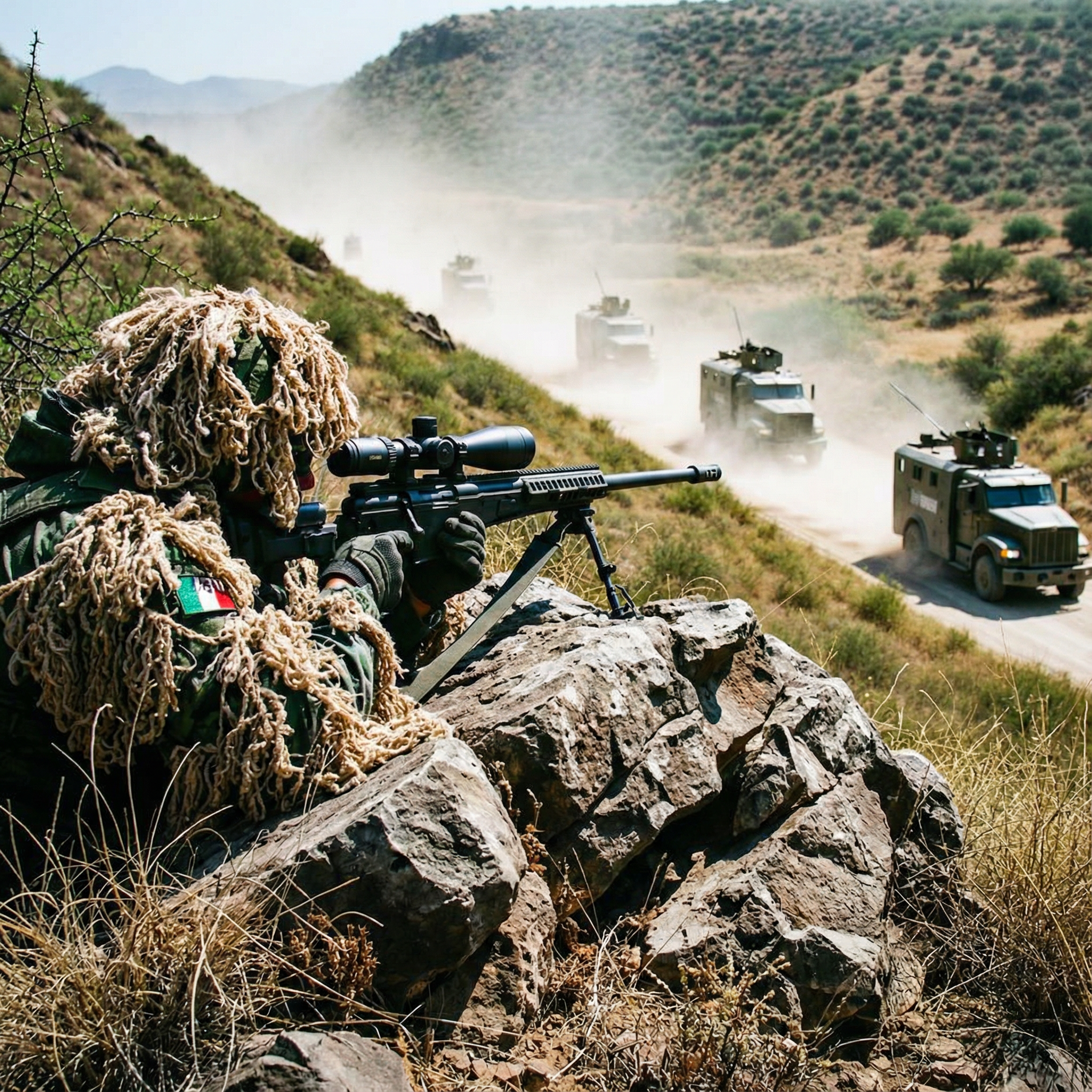 El plan era una locura digna de un suicida. Dejaríamos los vehículos pesados avanzando muy lento, con solo los conductores, como cebo; el ruido de los motores cubriría el movimiento real. El resto de la unidad, mis muchachos del GAFE, incluyendo a los equipos de francotiradores con sus Barrett y rifles de precisión CheyTac, desmontaríamos y nos moveríamos a pie, flanqueando la posición donde ellos estaban escondidos.