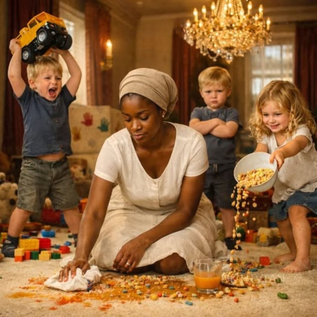 La mayoría de las niñeras habría gritado, suplicado o salido corriendo. Naomi no hizo ninguna de esas cosas. Se ajustó el pañuelo de la cabeza, agarró un trapeador y empezó a limpiar. Los trillizos se quedaron quietos un instante, confundidos. ¿Nada de gritos? ¿Nada de llanto? ¿Solo… limpiar?
