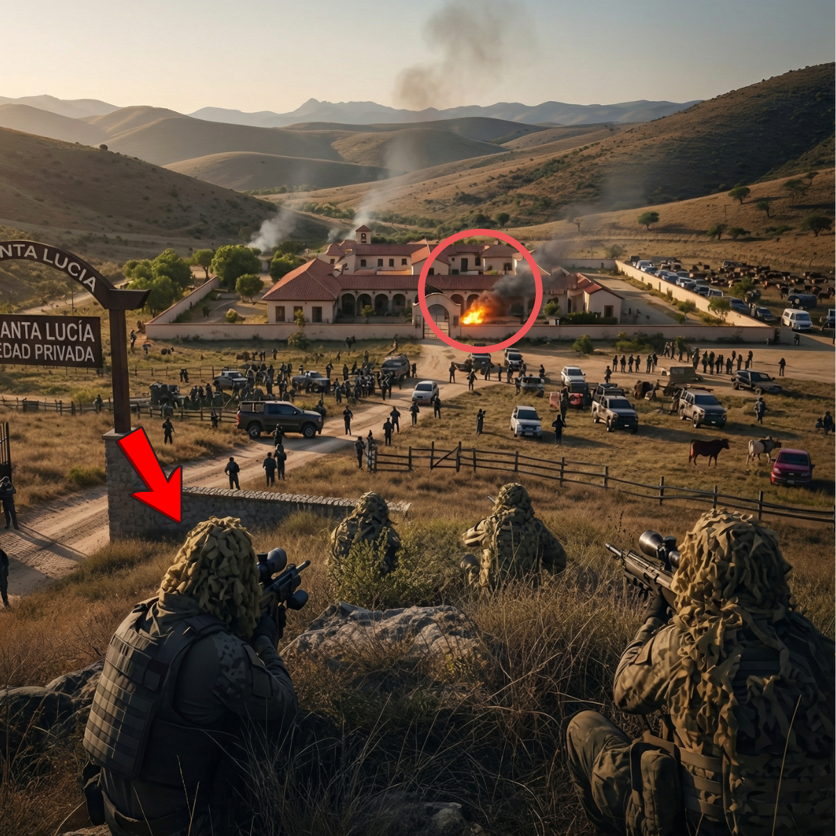 60 sicarios rodearon la finca, pero no vieron a los 15 francotiradores en los cerros.