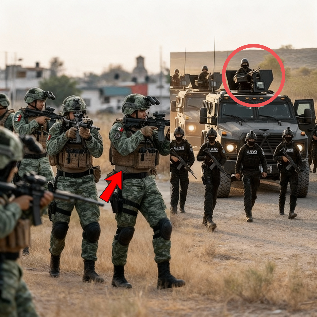 Traen fusiles AK-47 con cargadores de tambor, ametralladoras Barrett calibre .50 montadas en torretas, lanzagranadas RPG-7, chalecos tácticos con las siglas bordadas en negro: CJNG. Los Deltas vienen por su jefe. Vienen a rescatar a Delta 1. Vienen confiados, seguros de que la superioridad numérica les garantiza la victoria.