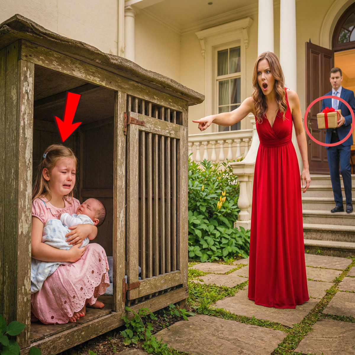 El bebé lloraba aún más fuerte, la cara roja, sus diminutas manos aferradas con desesperación a la blusa de su hermana. La puerta trasera se abrió de golpe. Un viento helado entró. Isabel los empujó hacia afuera, directo al viejo casillero de perros de madera que estaba en la esquina del patio. Abrió la puerta de golpe, obligó a Mariana y a Diego a entrar, la cerró de un portazo y la aseguró con llave.